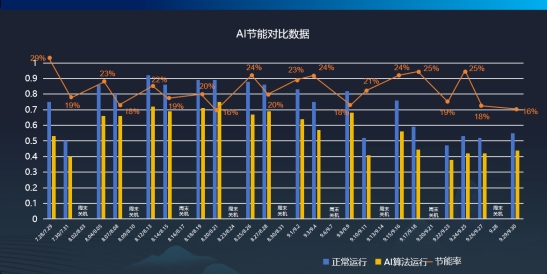在杭州南湖未来科技园,仅AI算法节能就达到21.3%。该项目集商业和办公于一体,各个区域需求不同,上下班时间也不一致。传统操作模式一开全开,中途人工调节相对滞后,无法实时跟踪负荷变化,导致每月空调电费居高不下。